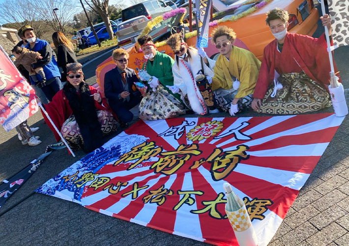 2024年度の成人式にてご注文いただいたオリジナル成人式旗の制作事例をご紹介します。棒を通して手持ちできるサイズから集合写真映えする特大サイズまで、幅広く特注作成いたしております!