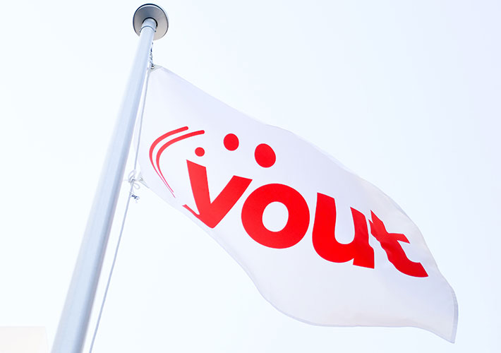 会社様のシンボルとして、社屋前に掲揚して頂いております。テトロンツイル生地に両面印刷を施し、ロゴがくっきり鮮やかに映えています。