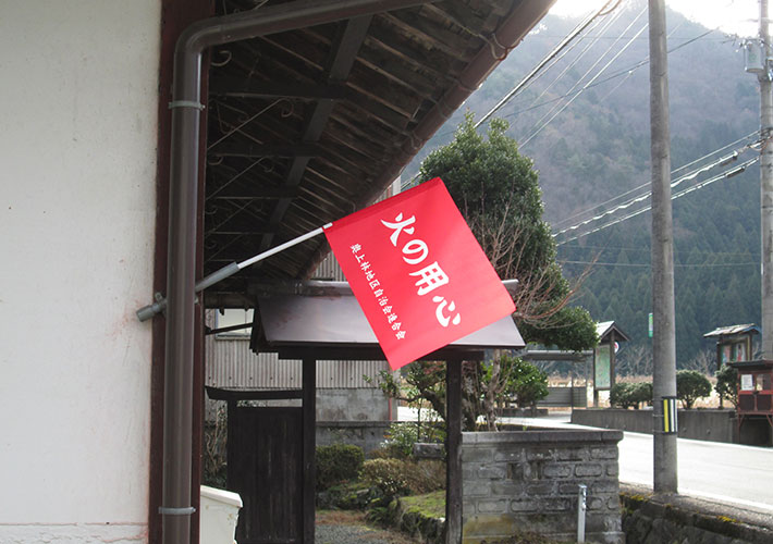 火災予防週間に各戸で掲示する特注手旗を製作しました。鮮やかな赤色に「火の用心」の文字がよく目立ち、啓発にしっかり役立つ手旗に仕上がっています!
