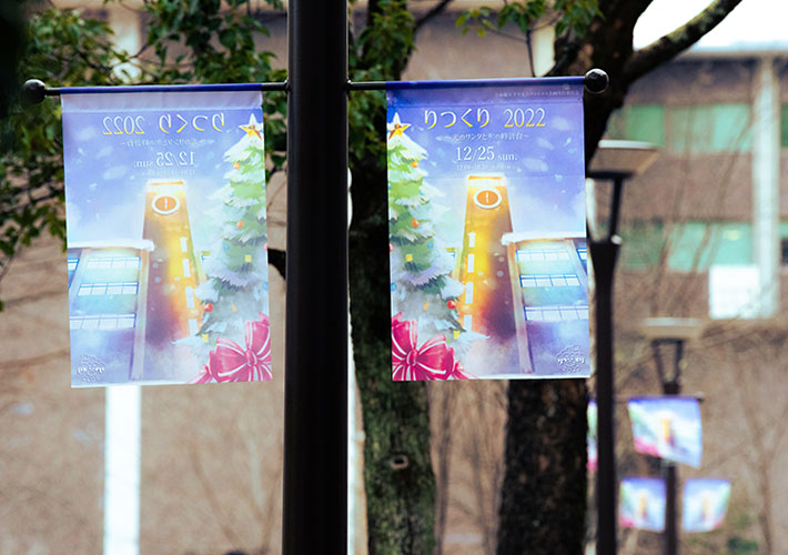 - 【事例680】大学様のクリスマスイベント用の街灯フラッグを製作いたしました2023/03/01