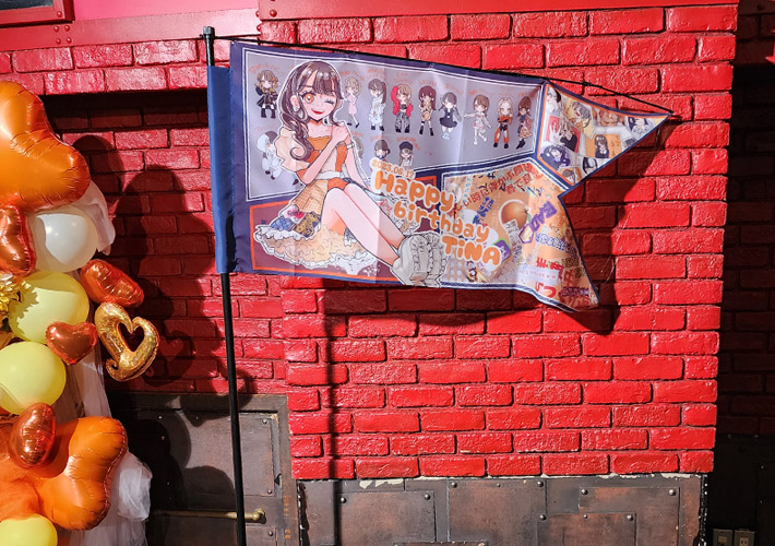 かわいいイラストやメッセージがたくさん詰まったオリジナル旗を製作しました。当店ではオリジナル旗を1枚から発注可能ですので、推し活グッズや生誕祭の飾り付けグッズの特注作成も可能です!