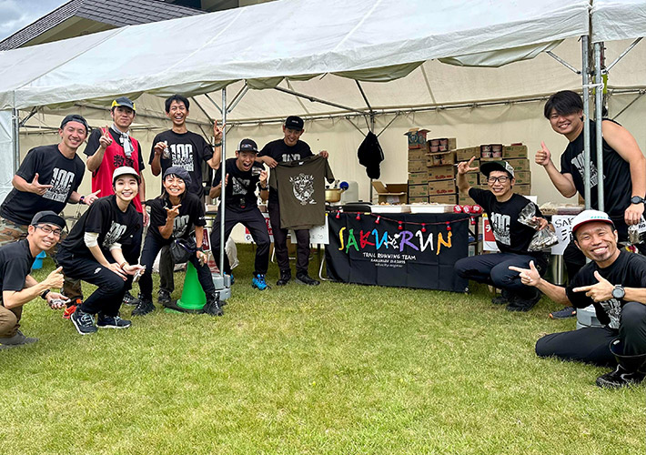 w2,000×h2,000(mm)の大きな正方形サイズで、手で振って使える応援旗を製作しました。大きな「桜」の文字がよく目立つ、存在感抜群の応援グッズに仕上がっております!