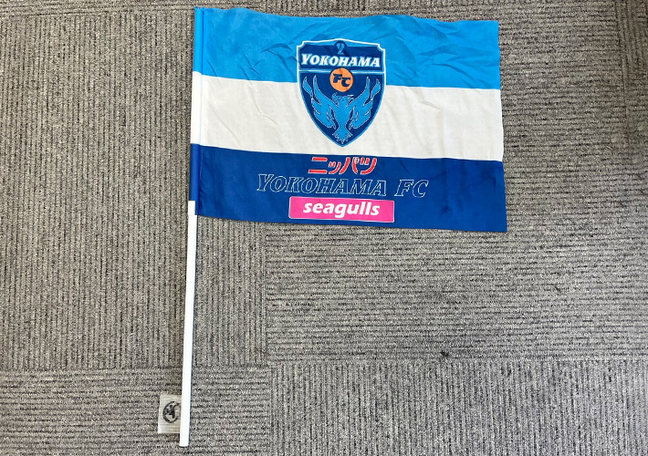 サッカーの応援を盛り上げるゲートフラッグを製作致しました!印刷デザインの他、ポールを取り付けるための仕立て、フラッグのサイズもオーダーメイドしております。